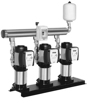 Полностью готовые к эксплуатации автоматизированные установки с частотным управлением. Установки оснащаются трубной обвязкой (всасывающий и напорный коллекторы*, запорные краны, обратные клапаны), гидроаккумулятором, датчиком давления, рамой-основанием*, блоком электрической коммутации.