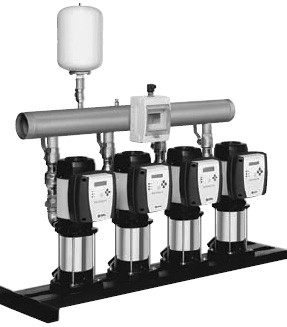 Полностью готовые к эксплуатации автоматизированные установки с частотным управлением. Установки оснащаются трубной обвязкой (всасывающий и напорный коллекторы*, запорные краны, обратные клапаны), гидроаккумулятором, датчиком давления, рамой-основанием*, блоком электрической коммутации.