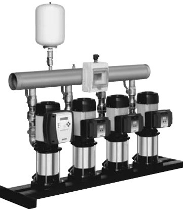 Полностью готовые к эксплуатации автоматизированные установки с частотным управлением. Установки оснащаются трубной обвязкой (всасывающий и напорный коллекторы*, запорные краны, обратные клапаны), гидроаккумулятором, датчиком давления, рамой-основанием*, блоком электрической коммутации.