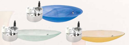 Стеклянные чаши поставляются трех различных цветов: синего, оранжевого или зеленого, диаметром 70 см.