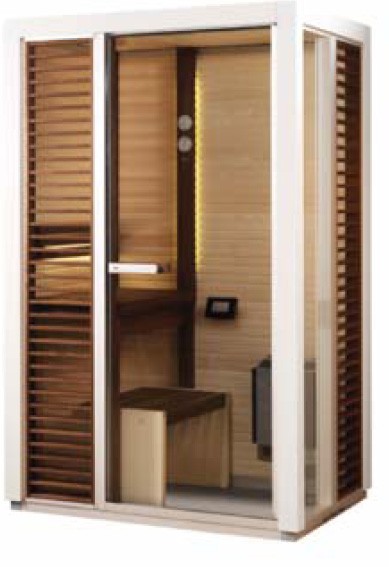 Tylö создала сауну Tylo Impression, которая занимает всего лишь 1,3 м2 и может оборудоваться как нагревателем для традиционной сауны, так и нагревателем для мягкой паровой сауны. Профили из лакированного алюминия (белого или черного цвета) соответствуют запатентованной конструкции, которая обеспечивает максимум универсальности в рамках уникальной системы Tylö. Они легко и без винтов соединяются друг с другом. Гладкие линии не только приятны взгляду, но и делают уборку легкой. Жалюзи являются съемными.