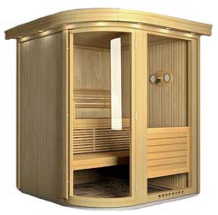 Эта модель для тех, кто предпочитает сочетание роскоши. Для этой особенной сауны характерны закругленные формы корпуса, большие стеклянные панели и сочетание в отделке различных пород дерева.