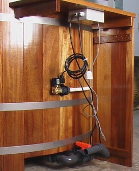 Набор «NF» включает: доливная форсунка, соленоидный клапан, электронный система управления с регулятором времени закрытия, датчик уровня воды и клапан вместо пробки. Тумба для всего оборудования спроектирована для соединения со стеной (т.е. задняя часть открыта).