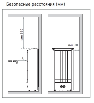 Размеры каменки: ширина 480 мм, глубина 260 мм и высота 940 мм, вес 20 кг.