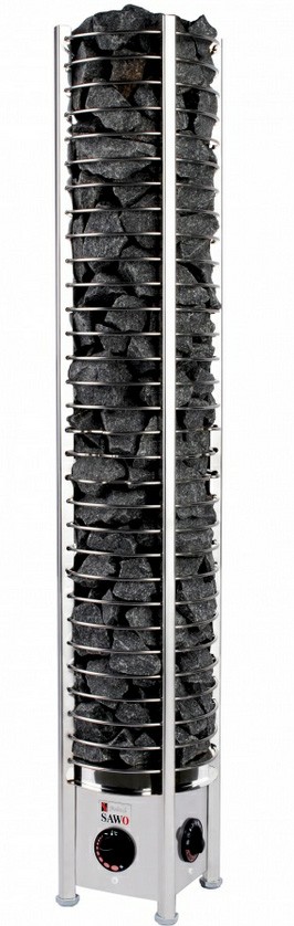 Печи Sawo Tower из нержавеющей стали с уникальным дизайном, в которой помещается 70-360 кг камней для сауны, что позволяет дольше сохранять тепло в сауне. Электрокаменка обеспечивает равномерное распределение тепла в течении длительного периода времени. Печи рассчитаны на мощности от 3 кВт до 24 кВт. Со встроенным пультом управления.