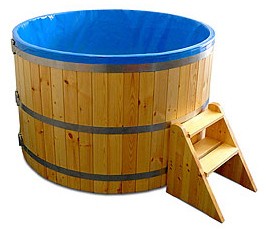 Герметичность деревянной купели достигается вкладышем из пленки ПВХ, который четко повторяет своей геометрией внутренний профиль купели. В верхней части купели край вкладыша от сползания зафиксирован обручем.