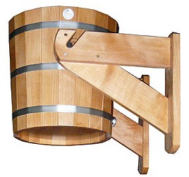 Обливное устройство для бани производства ИТС представляет собой подвижное на кронштейнах, устанавливаемое на стену, бондарное изделие емкостью 20 литров.