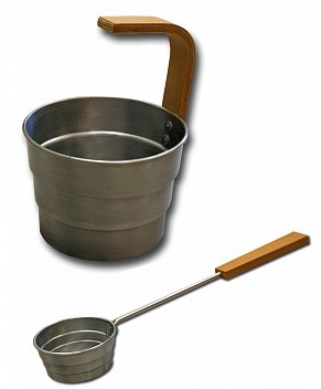 Набор для бани и сауны черпак и ушат выполнен из брошированного алюминия. Дизайн был специально изготовлен для компании SAUNIA молодым дизайнером Annika Korpela. Объем ушата - 4 литра Длина черпака - 48 см Страна изготовления ФИНЛЯНДИЯ