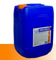 ЭМОВЕКС-новая формула концентрированный раствор хлора, наилучшее средство из жидкой химии для бассейна, незаменимый помощник, обеспечивающий полную дезинфекцию воды и осуществляющий её защиту от бактериальных загрязнений; позволяет получить чистую прозрачную воду, лишенную водорослей и бактерий, предупреждает образование известкового налета. Содержание активного хлора в этом продукте 135 - 140 граммов на литр, расфасован в тридцатилитровые канистры (товарный вес - 34 кг), идеально подходит для установок автоматического дозирования химии.