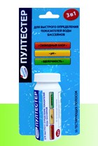 Назначение: быстрое определение рН, свободного хлора и щелочности в воде бассейнов. 50 тестирующих полосок.
