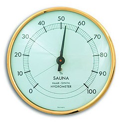 С помощью гигрометра Вы сможете контролировать комфортные условия при банных процедурах. Оптимальные условия в бани отмечены сектором (от 5 до 30 % влажности).