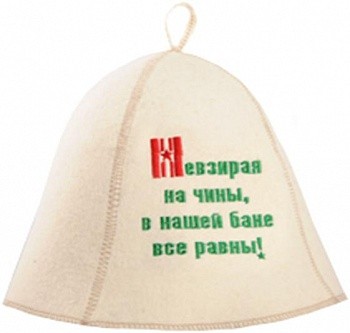 Купить ШАПКА ДЛЯ БАНИ С ВЫШИВКОЙ "НЕ ВЗИРАЯ НА ЧИНЫ В НАШЕЙ БАНЕ ВСЕ РАВНЫ" Вы можете отправив товар в корзину