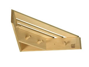 Назначение: Полка-вешалка угловая предназначена для размещения (хранения) банных халатов, полотенец, головных уборов и других банных принадлежностей в комнате отдыха бани (сауны). Возможно использование вешалки и для хранения домашней одежды в квартире, на даче, в коттедже.