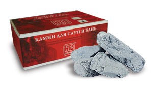 Камни для бани, сауны из габбро-диабаза, масса 20 кг, упакованы в коробку из картона, изготовлены в России.