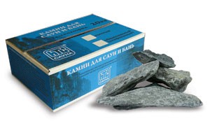 Камни для бани, сауны из талькохлорита, масса 20 кг, упакованы в коробку из картона, изготовлены в России.