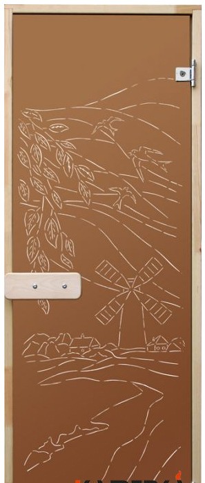 Купить Дверь с рисунком "Мельница", коробка - береза Вы можете отправив товар в корзину