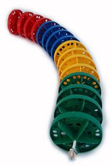 Нашей компанией разработаны разделительные дорожки нового образца, у которых диаметр волногасителя равен 125 мм. Рекомендованы для 50-метровых бассейнов, также используются в бассейнах длиною 25 метров или нестандартной длины. Разделители дорожек протягиваются по всей длине бассейна и закрепляются на обеих торцевых стенках бассейна, для этого в них должны быть вмонтированы анкерные крепления.