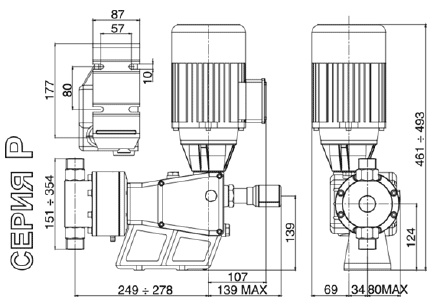 помощи микрометрической ручки, которая управляет длиной хода пистона. Мощность двигателя – 0.75 кВт Диаметр плунжера, 85 мм