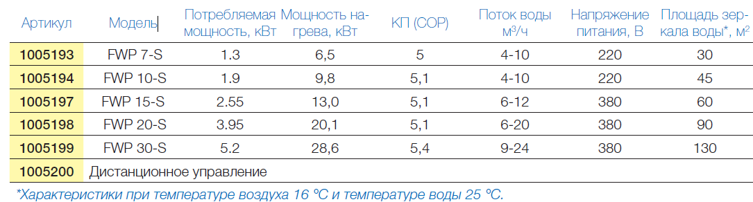 Купить тепловые насосы серии FPW-S set 1005193 FWP 7-S Площадь зеркала воды*, 30 м2 Вы можете отправив товар в корзину