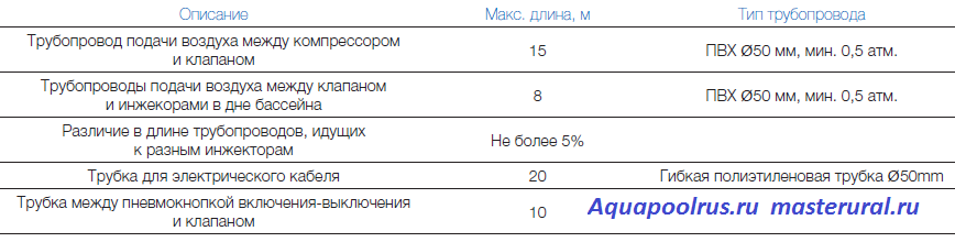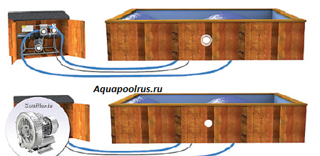 Воздух попадает через инжекторы в бассейн и