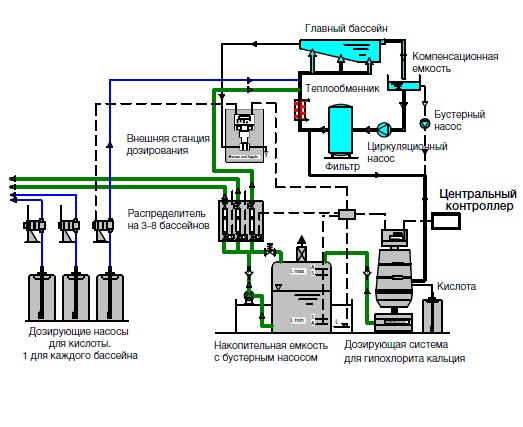 ным гипохлоритом кальция комплексов от 3 до 8 бассей-