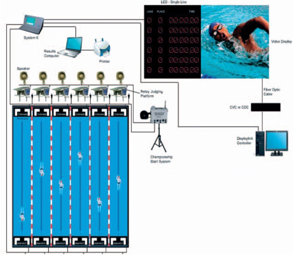 Пример системы хронометража для проведения соревнований с использованием System6 для 25 метрового бассейна