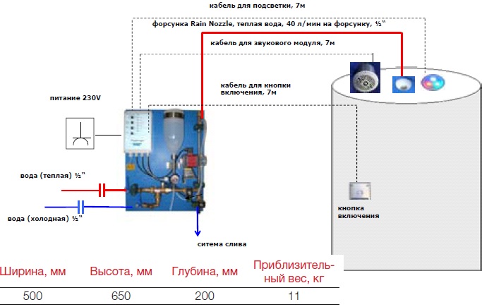 нии программы свет снова становится белым, душ и звуки выключаются. Длительность