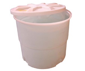 В крышке установлен штуцер с внутренней трубной резьбой на 2”. Стандартный цвета синий и белый (под заказ - красный, черный, зеленый, желтый, оранжевый)