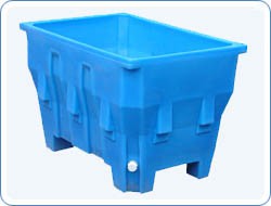 Высота ножек обеспечивает возможность обработки изотермических контейнеров гидравлической тележкой или погрузчиком. Пустые изотермические контейнеры вкладываются друг в друга. Стандартные цвета: синий и белый.