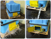 Емкость для перевозки живой рыбы (живорыбный контейнер) оборудована двумя люками для загрузки и выгрузки рыбы, сливным краном. Верхний люк размерами 720х580 мм крепится к емкости петлями и фиксируется двумя резиновыми запорами. Этот люк снабжен устройством для выхода воздуха. Нижний люк -360х290 мм. Сливной кран с воронкогасителем на 2" снабжен быстроразъемным соединением и защитой от попадания рыбы в сливное отверстие.