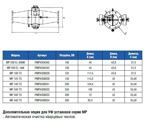 Серия МР оснащена ручной очисткой кварцевых чехлов.