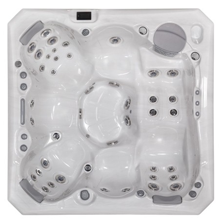 При своих скромных по бассейновым меркам размерах, всего лишь 2 на 2 метра, эта модель благодаря отличной эргономике расчитана на 6 человек, в том числе в этом спа есть и лежачее место.
