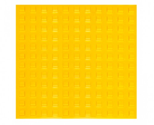 Тактильная плитка крепится при помощи клея на имеющееся напольное покрытие. Пол может быть неровным — материал гибкий, поэтому небольшие выступы не помещают монтажу. Модули имеют достаточно большой размер (500х500 мм), за счет чего