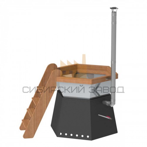 Банный чан 6 граней на подставке с ветрозащитой и печкой 600 литров