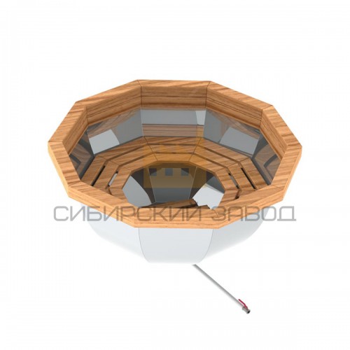 Подставки, лестницы и печки в данной модели нет. Но зато 10-гранный банный чан с кедровой обшивкой можно вмонтировать в подставку из кирпича или камня самостоятельно. Рассчитан на компанию из 8-10 человек.