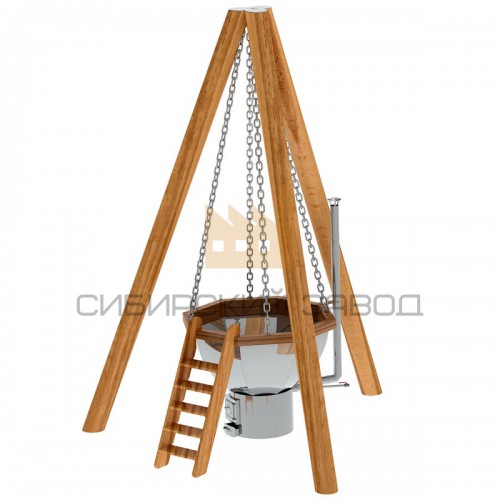 Купание в банном чане подарит вам массу новых ощущений за счет контраста температур – холодного воздуха снаружи и теплой воды в чане. Процедура способствует полному расслаблению: вы почувствуете себя обновленным, полным сил и энергии. А чтобы оказаться еще и в состоянии легкого парения в воздухе, предлагаем купить банный чан на бревнах. Подвешенный прочными стальными цепями к деревянной треноге, такой котел будет приятно покачивать вас из стороны в сторону, даруя удивительное ощущение полета.