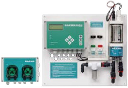 С перистальтическими насосами Автоматическая система химической обработки воды для бассейнов, позволяющая измерять и регулировать следующие показатели воды: • содержание свободного хлора; • водородный показатель воды рН; • окислительно-восстановительный потенциал воды Redox. Возможности системы: • Использует пропорциональное, интегральное и дифференциальное исчисление (ПИД-регулирование). • Электронный расходомер регулиру- ет поток в измерительной ячейке. • Дозирование рН- или рН+ (выбирается при настройке). • Две пары буферных растворов для калибровки рН-электрода: 4.0 и 7.0, либо 7.0 и 9.0. • Автоматическая регенерация электрода свободного хлора (очистка) с возможностью программировать её начало (до трёх раз в сутки).