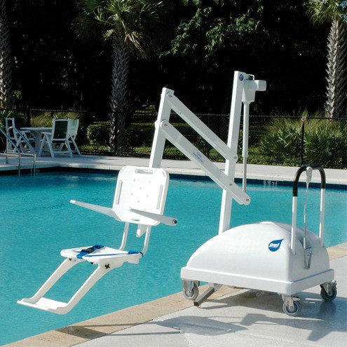 Идеальное решение для сооружений с несколькими поверхностями обходных дорожек. Мобильность кресла позволяет установливать его в любом месте бассейна.