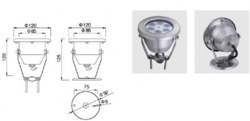Светильник светодиодный подводный IP68 установка на кронштейне XYH120G-6W 6*1W