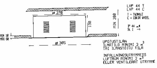 Для обеспечения достаточного охлаждения проектора в потолке или стене необходимо предусмотреть пространство размером 2 м³ , которое не должно иметь минераловатной изоляции и т.п. Степень защиты проекторов LVP, IP44, допускает установку также во влажных помещениях