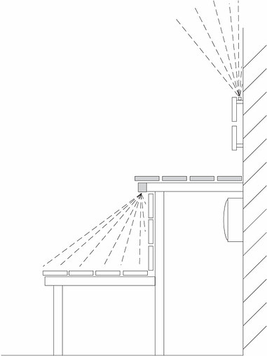 На реконструируемых объектах для проектора можно использовать источник питания прежнего светильника сауны. При необходимости, источник может быть перенесен, чтобы проектор можно было установить в укрытом месте под полками. Максимальное расстояние проектора от пола - 80 см.