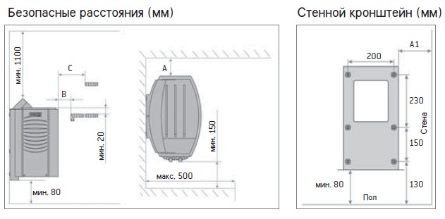Стенной кронштейн, А1 мин., мм |