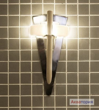 Светильник Факел настенного монтажа устанавливается на конце оптического волокна. Изготовлен из полированной нержавеющей стали, дерева и матового стекла. Красиво освещается волокном диаметром 3-4 мм.