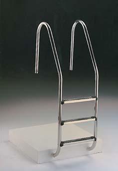 Лестницы для бассейнов изготовлены из полированной нержавеющей стали, труба ø 43. Ступени выполнены из пластмассы. Укомплектованы анкерными креплениями