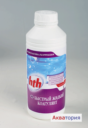 При большой мутности воды или после шокового хлорирования влить hth Быстрый жидкий коагулянт непосредственно в предназначенную для осветления воду из расчета 0,25 литра препарата на 10 куб. м. воды. Препарат растворяется в воде, и этот раствор при остановленной фильтрации вливается из лейки по всему периметру бассейна. Оставить действовать как минимум на одну ночь и затем осевшую на дно бассейна грязь собрать пылесосом и направить прямо в канализацию.