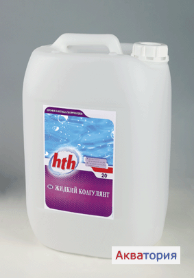 При большой мутности воды или после шокового хлорирования влить hth Быстрый жидкий коагулянт непосредственно в предназначенную для осветления воду из расчета 0,25 литра препарата на 10 куб. м. воды. Препарат растворяется в воде, и этот раствор при остановленной фильтрации вливается из лейки по всему периметру бассейна. Оставить действовать как минимум на одну ночь и затем осевшую на дно бассейна грязь собрать пылесосом и направить прямо в канализацию.