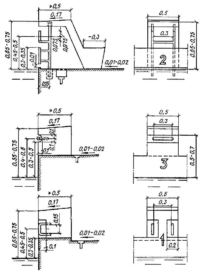 При высоте зала более 8 м и при меньшей высоте, если светильники расположены на потолке над зеркалом воды, осветительные приборы устанавливают на специальных мостках, располагаемых под потолком параллельно продольной оси ванны. Расположение осветительных приборов на мостках должно обеспечивать равномерное освещение зеркала воды при отклонении оптической оси прожектора от вертикали не более 45°. В отдельных случаях, в зависимости от расположения мостков, отклонение может быть увеличено в пределах до 50°.