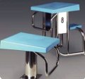 Стартовые тумбы изготовлены с использованием нержавеющей стали AISI.316. Стандартная стартовая тумба может быть демонтирована для возможности монтажа системы электронного замера времени Omega. По заказу она также может быть адаптирована к другим системам замера времени. Площадка 550 мм длиной x 500 мм шириной, с полированной отделкой каркаса, высотой 437 мм .