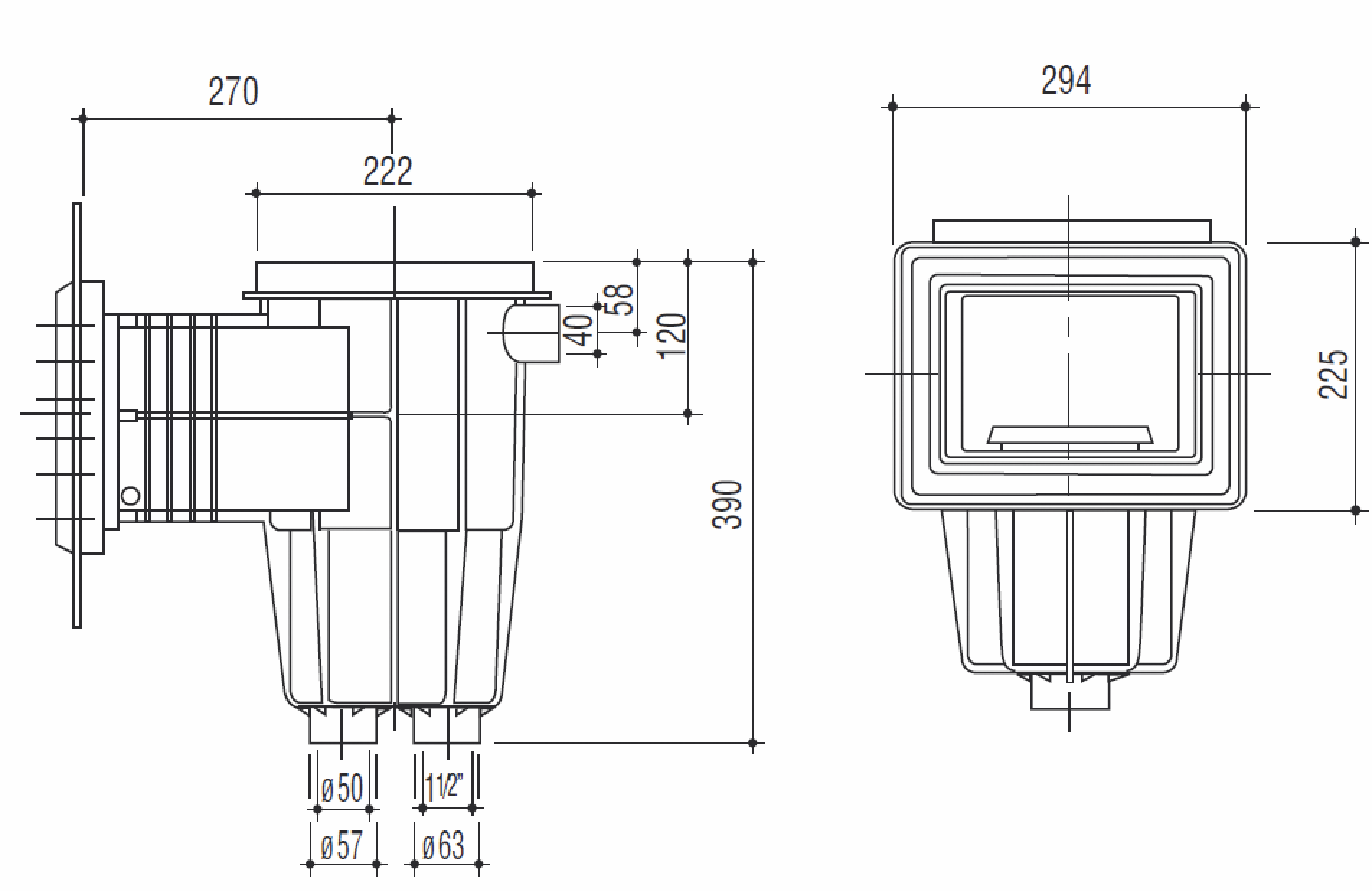 Скиммер Gemas 294х225мм 1 1/2" ВР M5 с квадратной крышкой с декор. рамкой (универсал) (04211BFW)